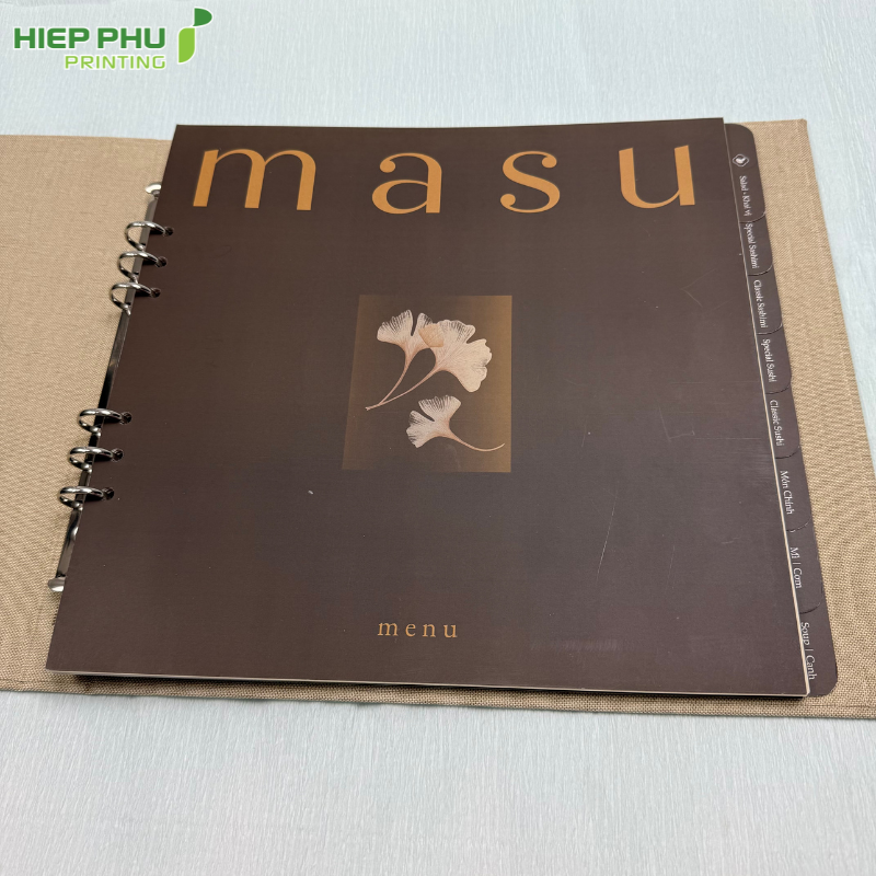 Đồng hành cùng Masu trong dự án lần này, In Hiệp Phú mang đến giải pháp in Menu giấy giả vải. Đây là một sự kết hợp hoàn hảo giữa kỹ thuật in ấn hiện đại và tư duy thẩm mỹ cao cấp. Nó không chỉ là một ấn phẩm, mà là lời khẳng định về đẳng cấp của một không gian ẩm thực tinh tế.