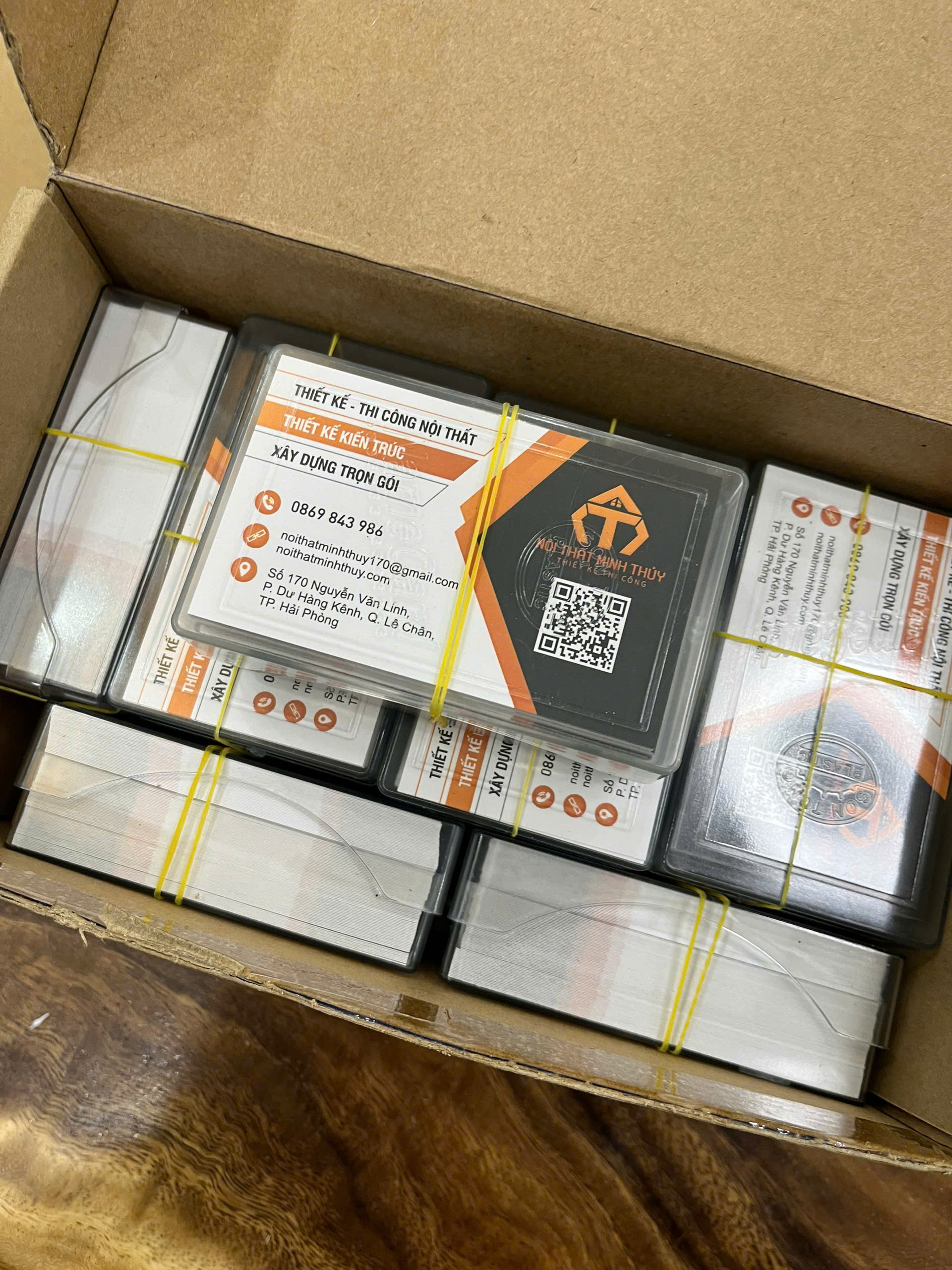 - Một hộp card visit bao gồm 100 thẻ đựng trong hộp nhựa mica trong suốt. Khi quý khách hàng đặt in card thì đơn vị tính tối thiểu là 1 hộp, và bên chúng tôi có in mẫu cho anh chị kiểm tra chất lượng in trước khi đặt.