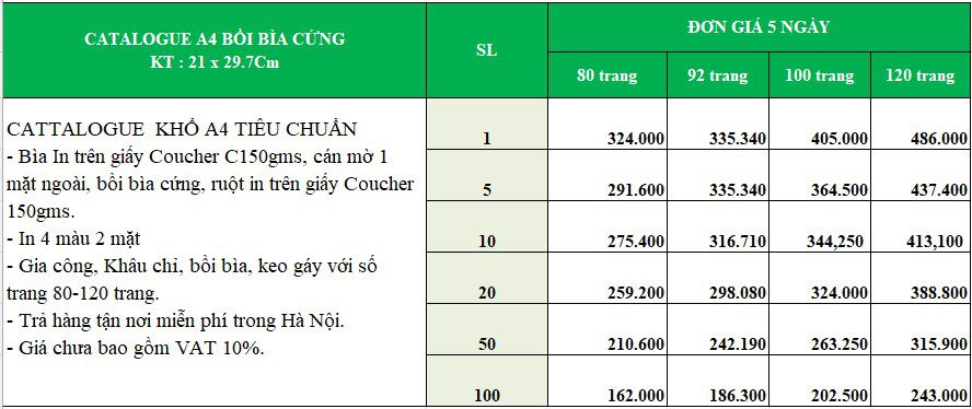 - Thứ ba, chúng tôi cam kết đáp ứng thời gian sản xuất nhanh chóng mà không làm ảnh hưởng đến chất lượng. Với quy trình làm việc tối ưu, chúng tôi đảm bảo rằng catalogue bìa cứng của bạn sẽ được hoàn thành đúng hẹn và sẵn sàng để bạn sử dụng.