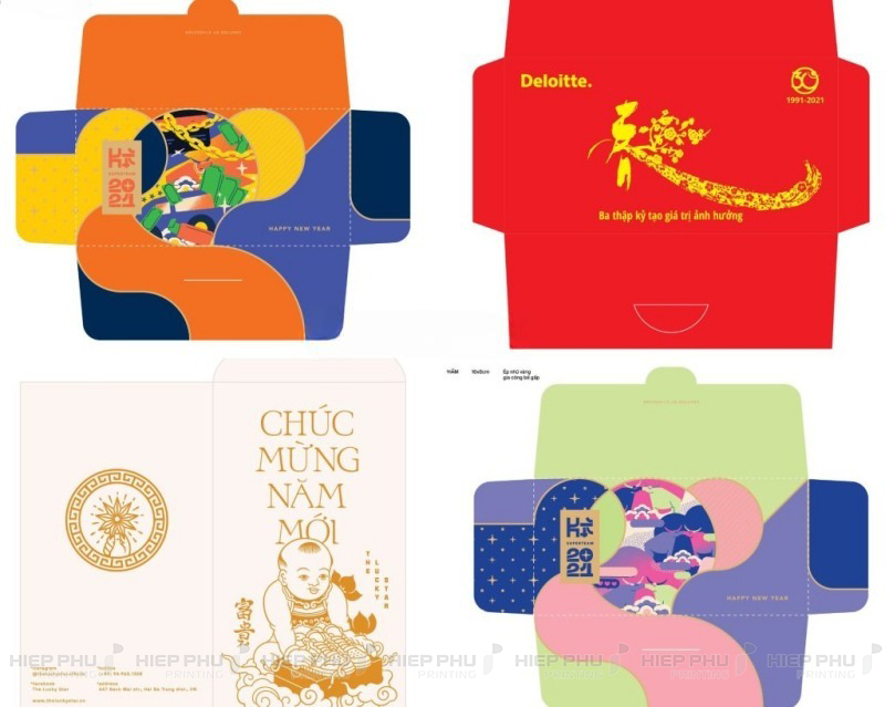 In phong bao lì xì là dịch vụ được khá nhiều doanh nghiệp, công ty quan tâm mỗi dịp Tết đến, xuân về. In phong bao lì xì thể hiện được nét riêng biệt, độc đáo của doanh nghiệp. Tạo ấn tượng với khách hàng, đối tác. Hiệp Phú Printing là đơn vị nhận thiết kế và in ấn phong bao lì xì tết chất lượng, ấn tượng với nhiều mẫu mã đẹp mắt, thời thượng.