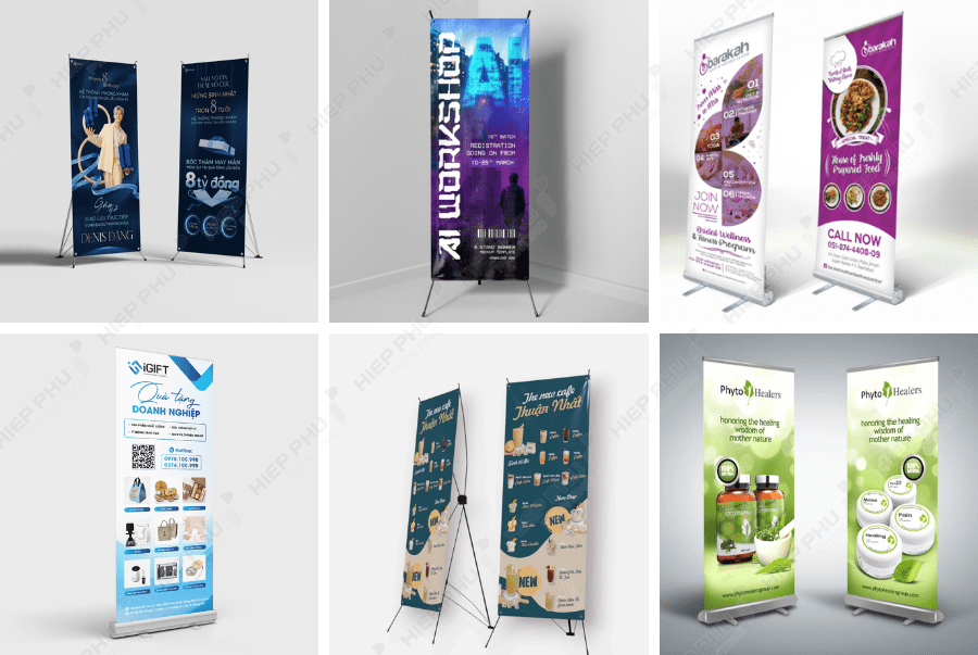 In Hiệp Phú chuyên thiết kế, in standee chân X và chân cuốn chất lượng cao.