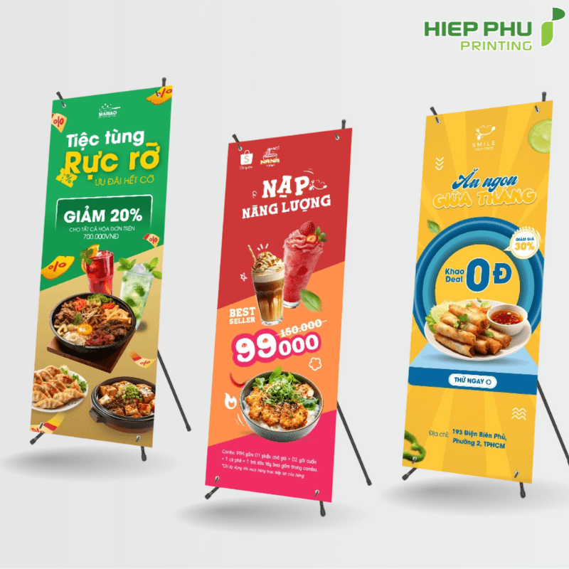 In Hiệp Phú chuyên thiết kế, in standee chân X và chân cuốn chất lượng cao. Giá rẻ, bền đẹp, phù hợp cho quảng cáo và sự kiện.