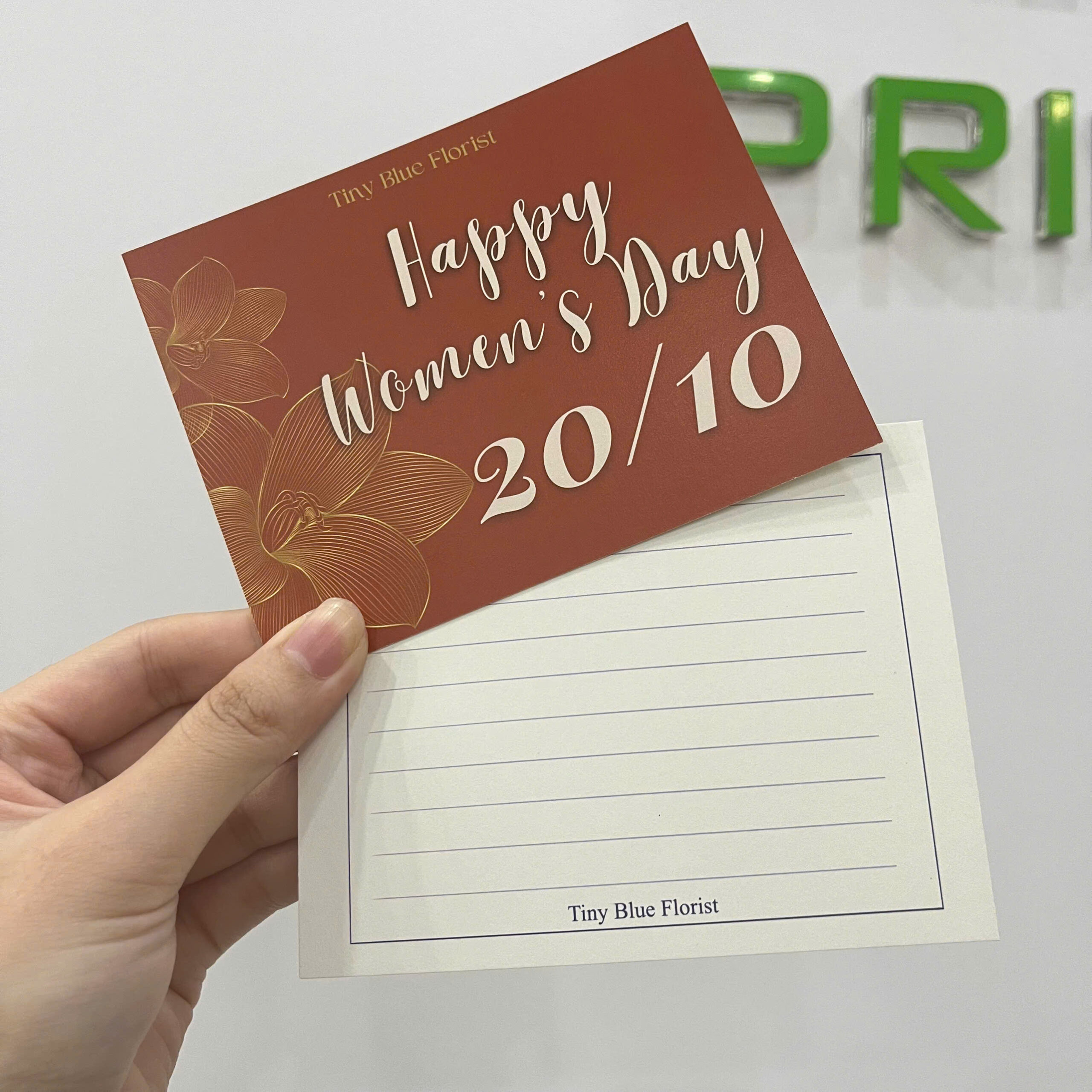 Trong thời đại số, một tấm thiệp chúc mừng in ấn truyền thống lại trở thành “vũ khí mềm” cực kỳ hiệu quả để kết nối và tạo thiện cảm với khách hàng, đối tác. Chỉ cần một thiết kế đẹp mắt đi kèm lời chúc chân thành, bạn đã có thể ghi điểm mạnh mẽ trong lòng người nhận, đồng thời nâng cao hình ảnh thương hiệu doanh nghiệp.
