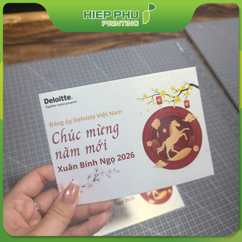 Chỉ còn khoảng 2 tuần nữa là đến Tết Nguyên Đán Bính Ngọ 2026, nhiều doanh nghiệp đã hoàn tất việc chuẩn bị thiệp chúc mừng năm mới để gửi tới đối tác và khách hàng. In Hiệp Phú hân hạnh giới thiệu những mẫu thiệp tiêu biểu được thực hiện trong mùa Tết năm nay. Giúp bạn có thêm ý tưởng cho bộ ấn phẩm của doanh nghiệp mình.