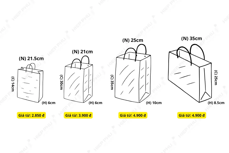Bạn có thể tham khảo các kích thước túi giấy Tết dưới đây: